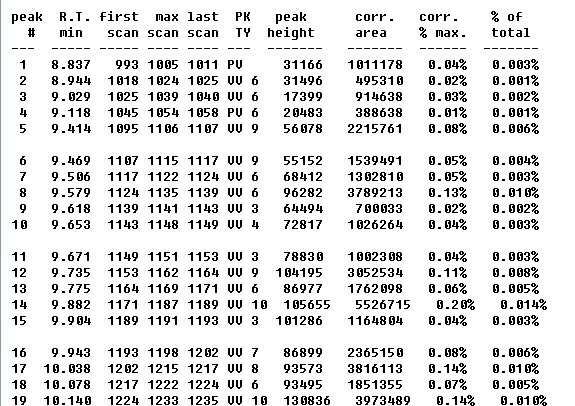 同学帮忙做的气质分析,可是发过来文本格式的,我想做成origin的图,就等着这图写论文呢,但是不知道怎么弄啊,也不知道要用什么软件。一般横坐标是m/z,但是我看哪个文本里就没有这个参数,只有停留时间。本人纯属外行,请做过的朋友们帮忙出点主意啊…… |