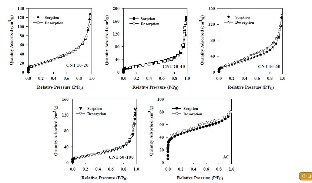 前四种是纳米碳管,最后一种是活性炭,分析手段就是用比表面积分析仪测得啊