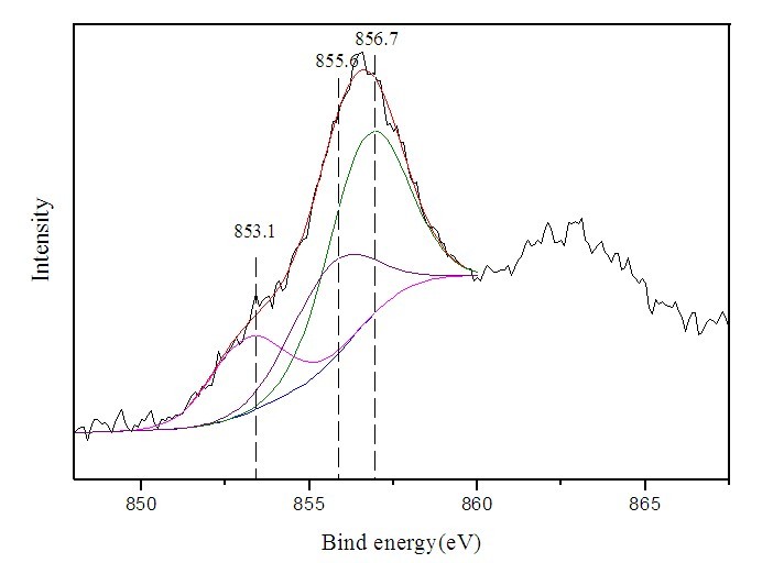 对于这个谱图,我对2p3/2拟合为三个峰,其中853.1为硫化态的镍,855.6为为硫化的NiO,856.7为镍铝尖晶石。初次接触,不知这样分析是否正确,请大家不吝赐教,万分感谢!