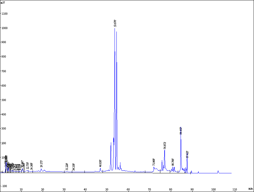 从你的锋形来看,如果你制备出来,估计你的纯度不高,先收集t为53的,然后在探索条件,再精制。后面的几个应该会好一些
