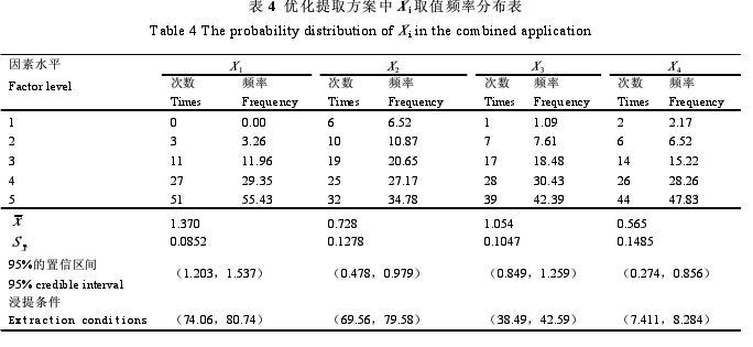 这里有一篇论文里面的实验因素和水平表,以及频率分布表,我用的是DPS7.05软件,分布表里面其他数据可以出来,就是最后的 浸提条件这个没有,请教各位老师,这个是怎么算的?还有实验应该得出一组最优值,这个怎么算? [ Last edited by love8914 on 2011-7-21 at 20:27 ] |