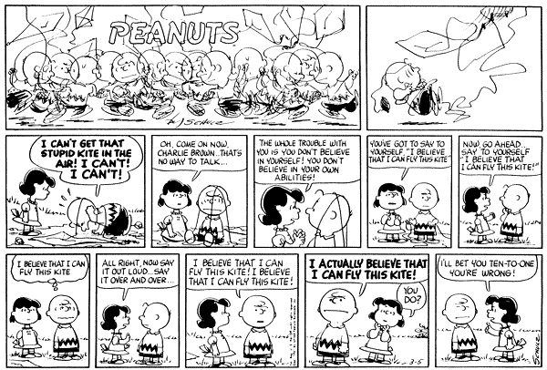 初学量化,优化完之后,跟我讲个故事,我晕鸟: CHARLIE BROWN..'I CAN'T GET THAT STUPID KITE IN THE AIR... I CAN'T... I C A N N O T...' LUCY..'OH COME NOW CHARLIE BROWN...THAT'S NO WAY TO TALK... THE TROUBLE WITH YOU IS YOU DON'T BELIEVE IN YOURSELF... YOU DON'T BELIEVE IN YOUR OWN ABILITIES... YOU'VE GOT TO SAY TO YOURSELF...'I BELIEVE I CAN FLY THIS KITE.'... GO AHEAD SAY IT....' CHARLIE BROWN..'I BELIEVE THAT I CAN FLY THIS STUPID KITE.....I BELIEVE THAT I CAN FLY THIS KITE........ I A C T U A L L Y B E L I E V E T H A T I C A N ******' LUCY..'I'LL BET YOU TEN-TO-ONE YOU'RE WRONG.......' SCHULZ |