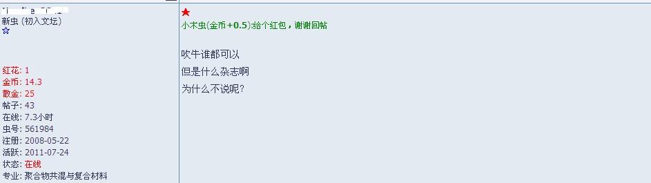 至于这样说话吗?心里没底诚信咨询,没告诉杂志,是因为还不肯定(还未收到接受信)。再则,就你这样,我还真不想告诉