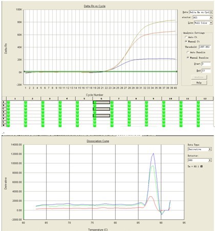 被同事问到一个问题,发现答不上来...这个~~只好求助大家了。 如下图所示,两个样品,一个ct小,但平台期指数低,一个ct大,但平台期指数高。熔解曲线很漂亮,说明无非特异性扩增。按照一般理解,扩增曲线的纵坐标与产物浓度应该是正相关的,那为什么ct小(即模板量高)的样品最后的产物浓度反而更低呢? ![]() |