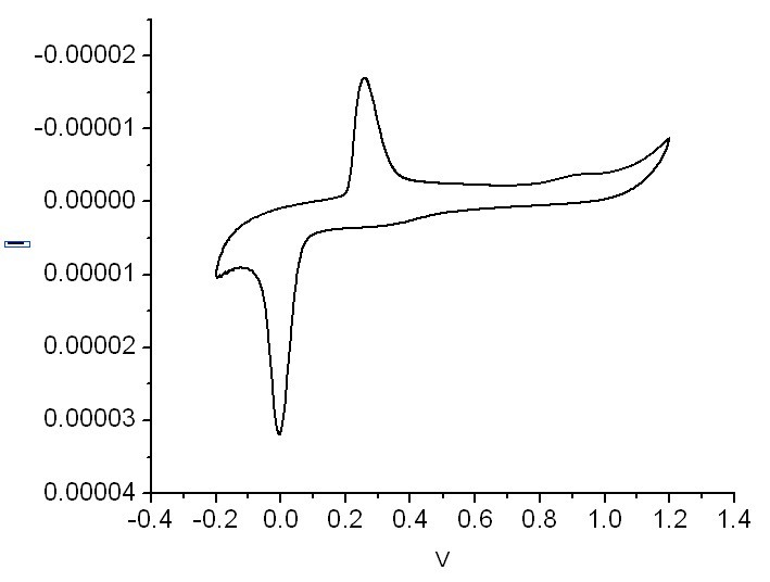 采用三电极法,工作电极为Au/Ag复合材料的催化剂修饰的波碳电极;对电极为Pt;参比电极为甘汞电极。在0.5M的硫酸溶液中扫描出现这样一个峰。是什么原因啊?当换成其他的工作电极时,没有峰的出现。好奇怪,求高手解答!