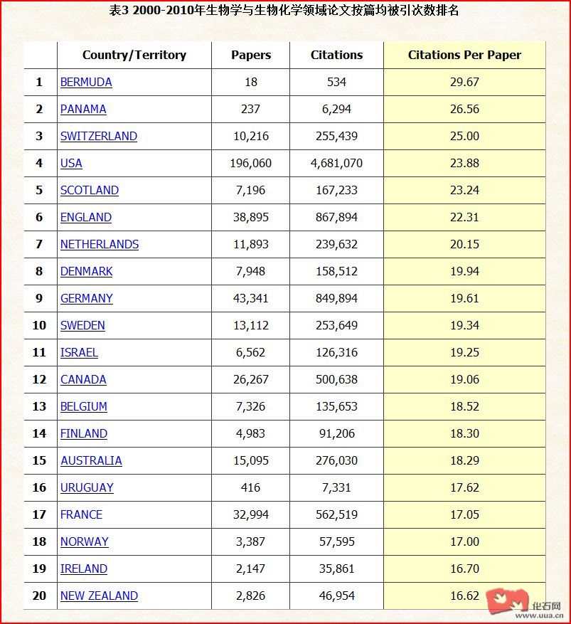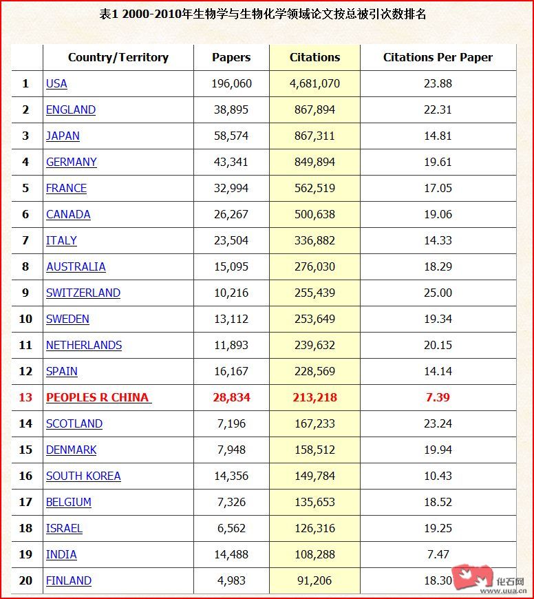 【转帖】近十年地球科学领域论文发表前20名国家与地区排名:2000-2010年