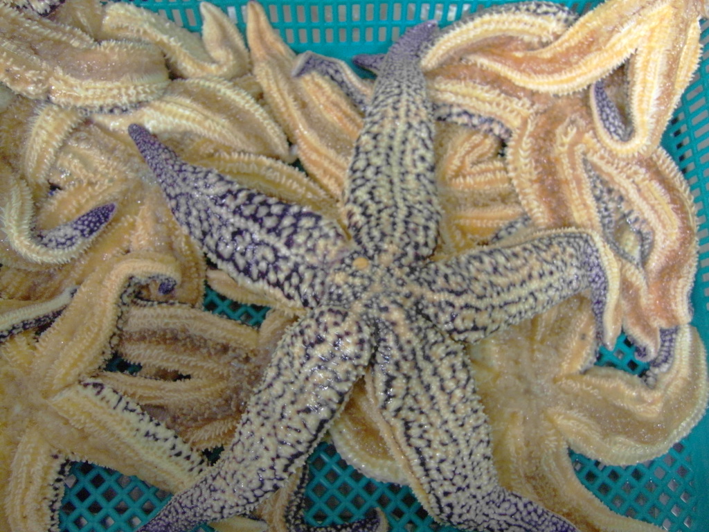 小虫正在做实验,想购买一些活的或带籽的海星(学名:多棘海盘车Asterias amurensis)。想从卵里提取一种酶。现在可能刚刚过了产卵的最佳季节。但我在网上看到说,在日照、青岛等地尚有带籽海星在卖!(转自http://bbshtml.shangdu.com/20110713/0100900219081/19081-1.htm)。 往虫友慷慨相助,不胜感激!!!! 下面为多棘海盘车照片!!! |