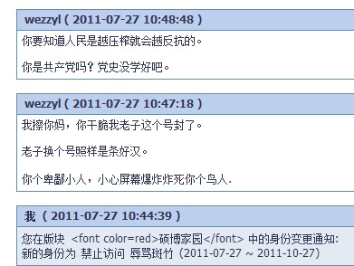 对ID为wezzyl给予禁止访问硕博家园版3个月处罚