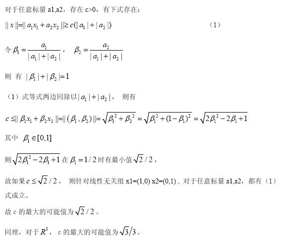 特别当a1=a2=...=an=a>0时,上式=sqrt(n)*a, 那么此时c可以为1/sqrt(n)