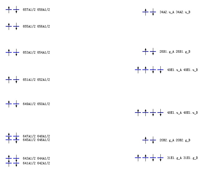 图二是我自己得到数据,左边是so,分子轨道的不可约表示都是A1,该怎么和右边对应起来呢