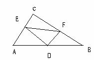 在RT△ABC中,∠C=90°,D是AB的中点,E、F分别在AC、BC上,且DE⊥DF,求证:EF的平方等于AE的平方加BF的平方。
