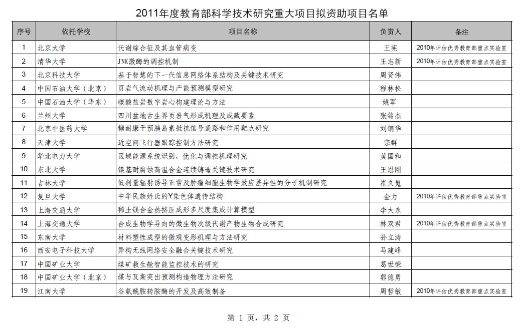 2012年度教育部科学技术研究重点项目拟资助项目公示 了