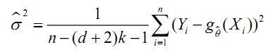 求助,如果已经得到了神经网络的模型(第一个图) 现在用该模型得到的训练样本估计值g与真实值y得到样本方差如图所示(第二个图)。 其中,k为隐藏点的个数,整个(d+2)*k+1就是神经网络的参数个数。 想问一下为什么 ‘n - 参数个数’ 就是计算样本方差的自由度啊? 谁能告诉我这个自由度(即分母)是如何确定的? |