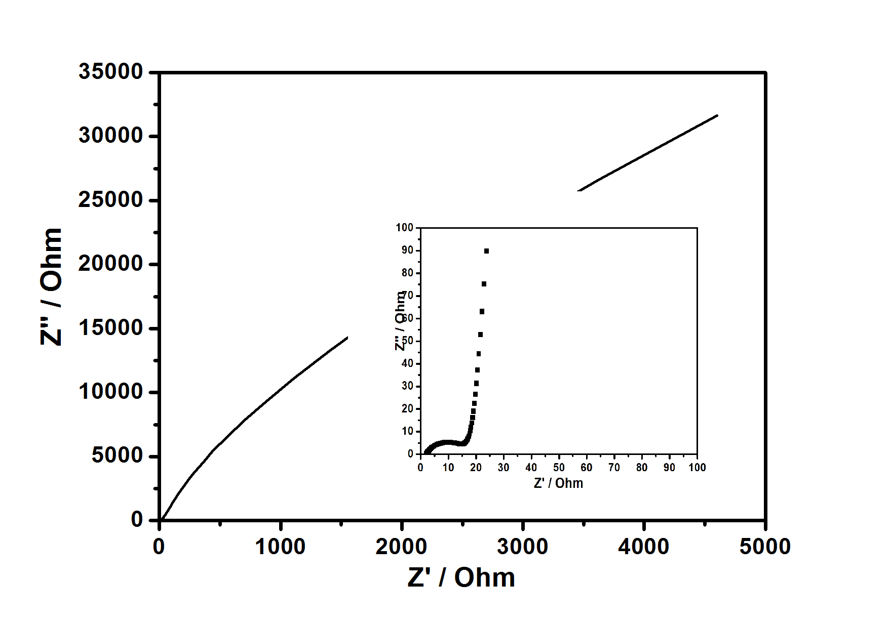 我刚刚开始做电容器,我的材料主要是CNTs,但是发现电流特别的小,不知什么原因;并且发现,Nyquist plots 在低频区电阻特别大,发现文献中都特别的小,大家是不是截图啊,只取了部分数据!希望各位大牛帮忙分析下。是不是器件没有做好,接触电阻太大的原因啊!图片如下! |