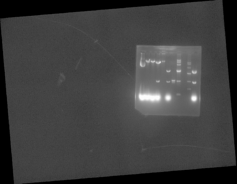这个是我酶切之后跑的电泳图,除了Marker和一个PCR的产物跑的条带是直线型的,怎么其他酶切的都好像跑的稍微有点快了??呈现那种所谓的微笑状,请各位虫虫帮忙分析一下原因。缓冲液?胶?还是本身质粒没有提好??? 底下的小片段是目的条带,大小应该和PCR的产物是一样的大小,但是从图片上看的话就是要小一些。 之前因为RNA酶的问题,所以最近的几次提质粒都没有进行消化,图片有点难看,望各位见谅!! |