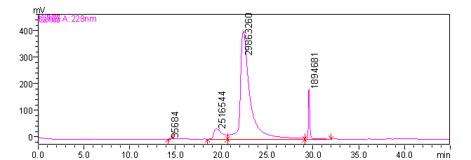 我现在在做用RP-HPLC分离蛋白质,分离效果一直不理想(见谱图),已尝试多种流动相,结果是目标峰与前面的杂峰分离不开,达不到基线分离,希望各位高手可以指导一下,十分谢谢!色谱条件:C18色谱柱(4.6×250mm,300A);流动相是0.1%三氟乙酸水和0.1%三氟乙酸乙腈;检测波长228nm,采用梯度洗脱。 |