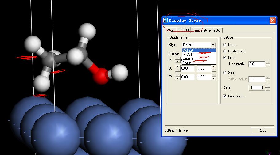 请教VESTA如何在金属表面的超胞中显示完整的分子?