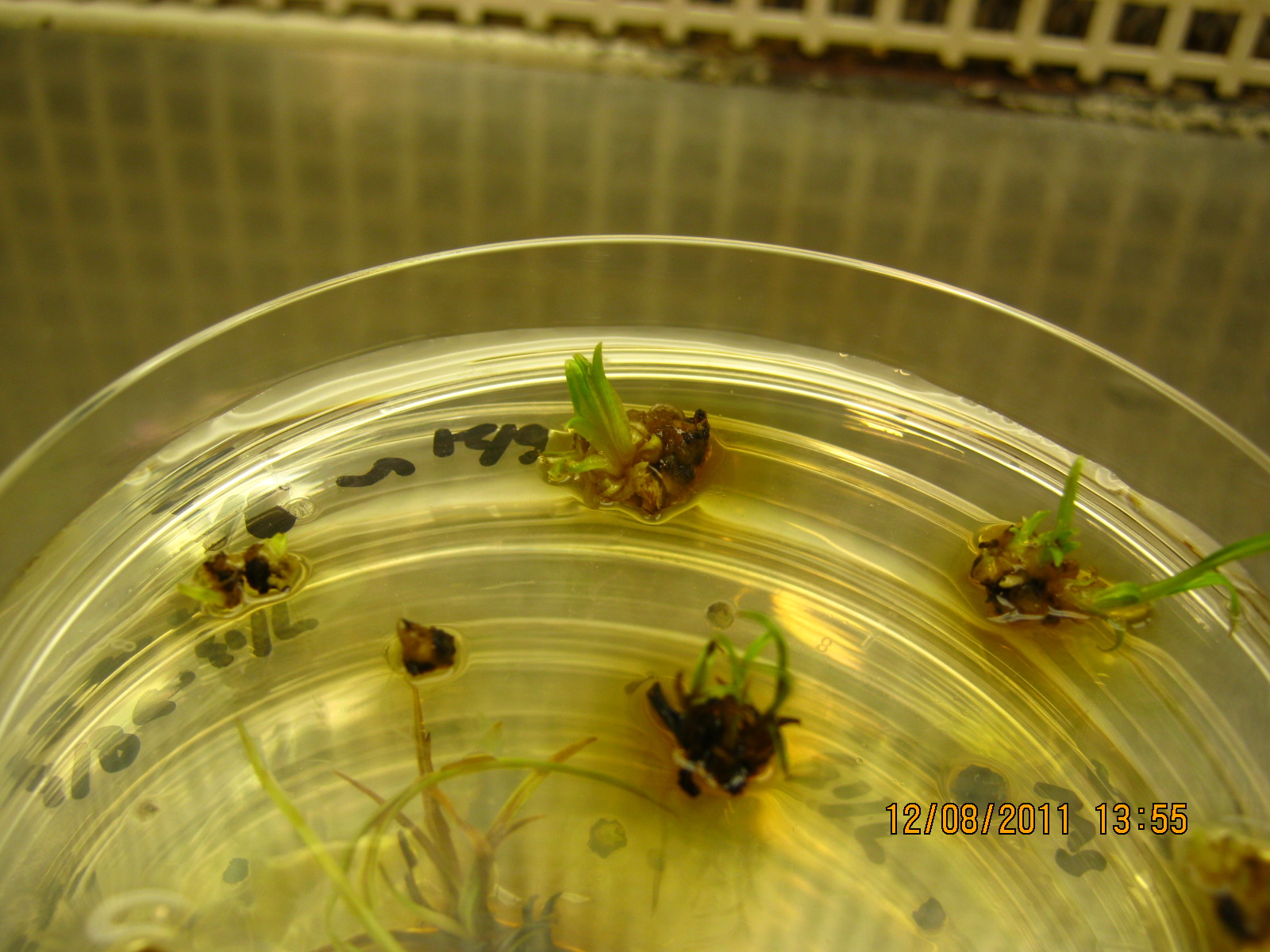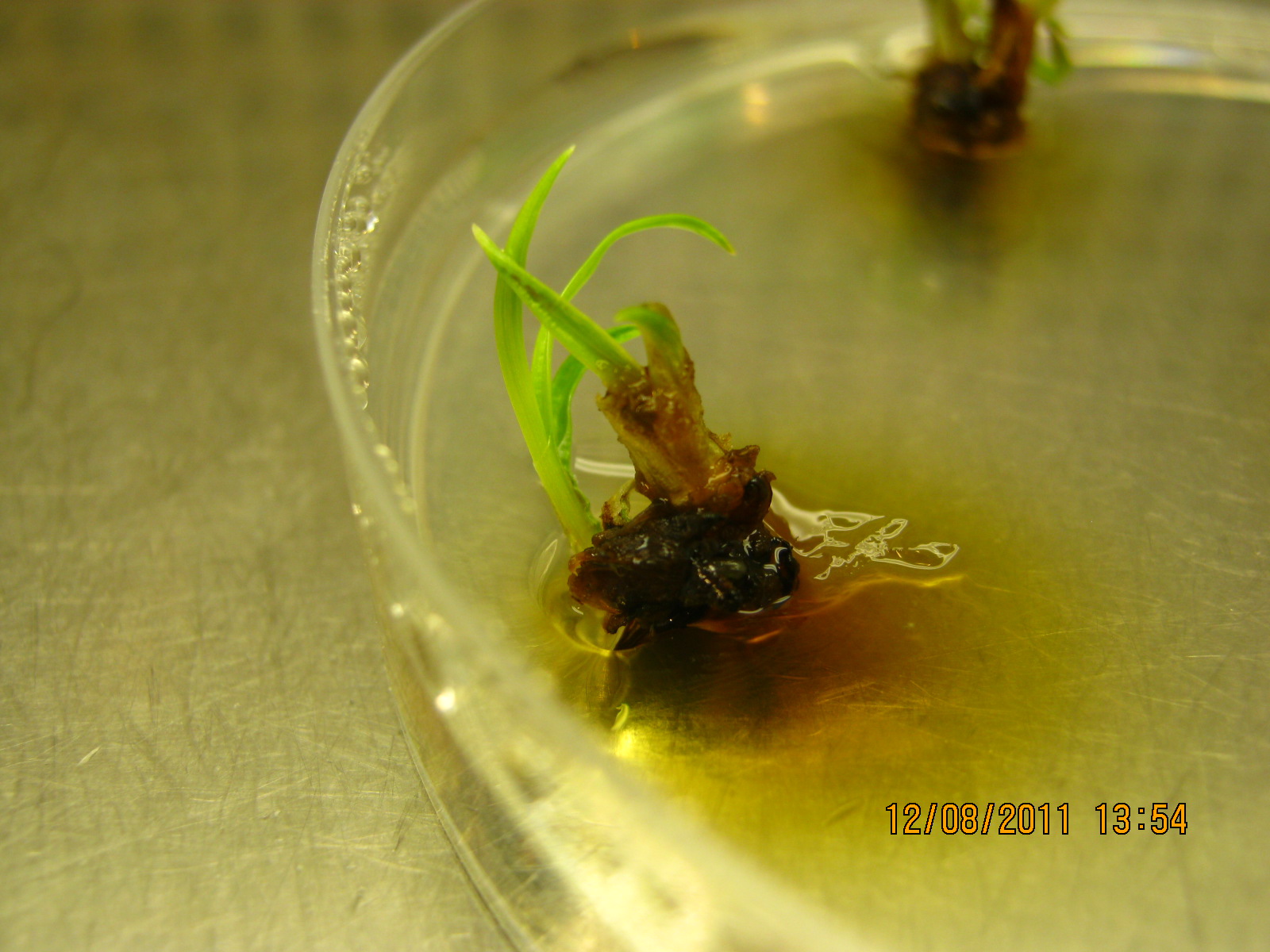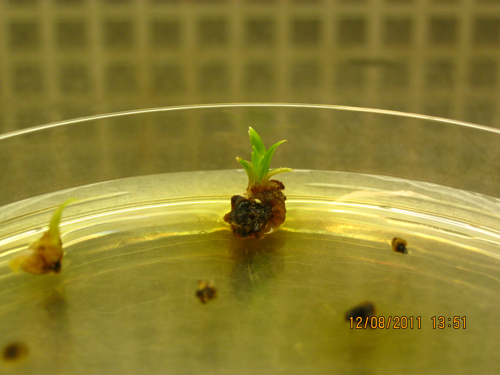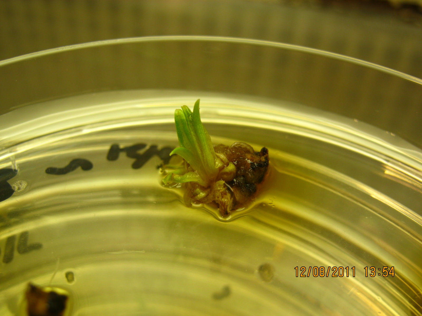 如题,我将种子蒙发,取芽的茎尖的分生组织,接到NAA:TDZ配比分别为(4,2.2),(3,1.1)(4,1.1)的培养基上(单位mg/L),放在暗下培养,约1个月左右,长出新芽。图片如下,想知道图中的新芽是由分生组织直接长成的,还是由愈伤组织脱分化发展而来的。 [ Last edited by hglxy2008 on 2011-8-18 at 20:20 ] |