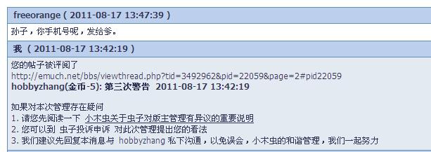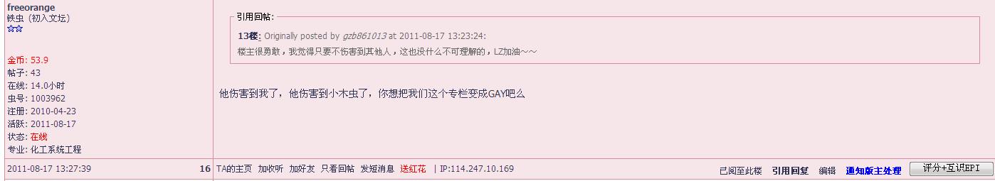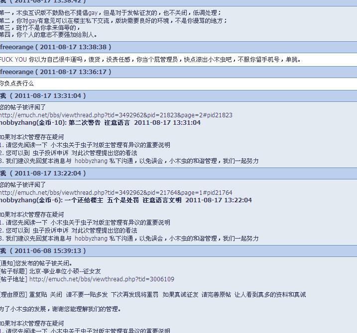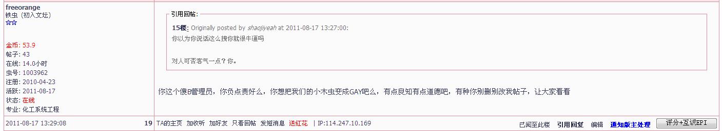 freeorange 辱骂发帖人 、辱骂回帖人 、辱骂斑竹,全论坛禁言