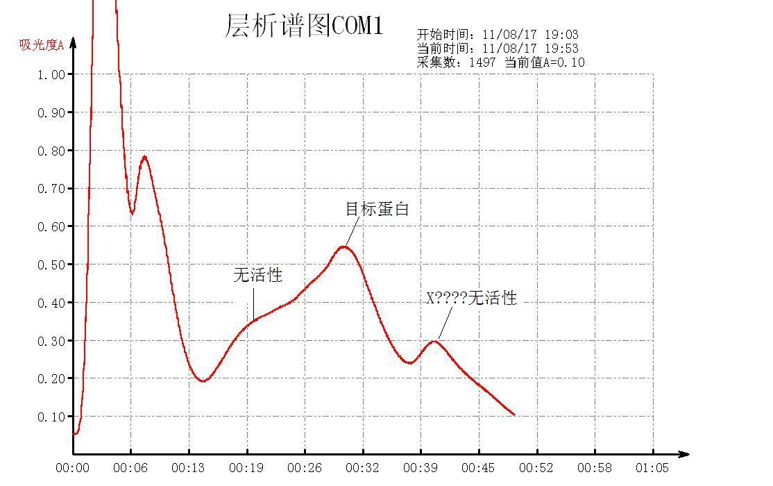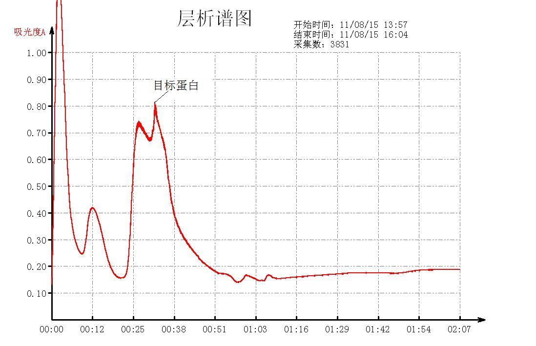 昨天用DEAE-纤维素过柱子,图谱如1,目标蛋白跟杂蛋白差没分开,今天用相同的缓冲液相同的上样量和样品,结果却一点都没分开,柱子1*20,上样2ml,梯度洗脱液为50mL 20mmo/L pH7.5 Tris一乙酸缓冲液和50ml 50mmol/L pH5.0Tris一乙酸缓冲液(含0.3mol/L 氯化钠),得到的图谱却是2和3的样子,请教各位长辈这是为什么?洗脱液要怎么调节才能将得到较好的洗脱效果? 图1 图2 图3 [ 来自科研家族 生物医药家族 ] |