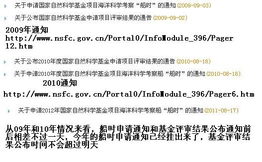 事实证明我的推断是可靠的,2011年船时申请落款时间8月18日,基金结果公布时间19日,根据09、10、11三年的情况来看,前后相差不超过1天,而且两个通知一直是前后相邻的两个通知,明年可以据此推断