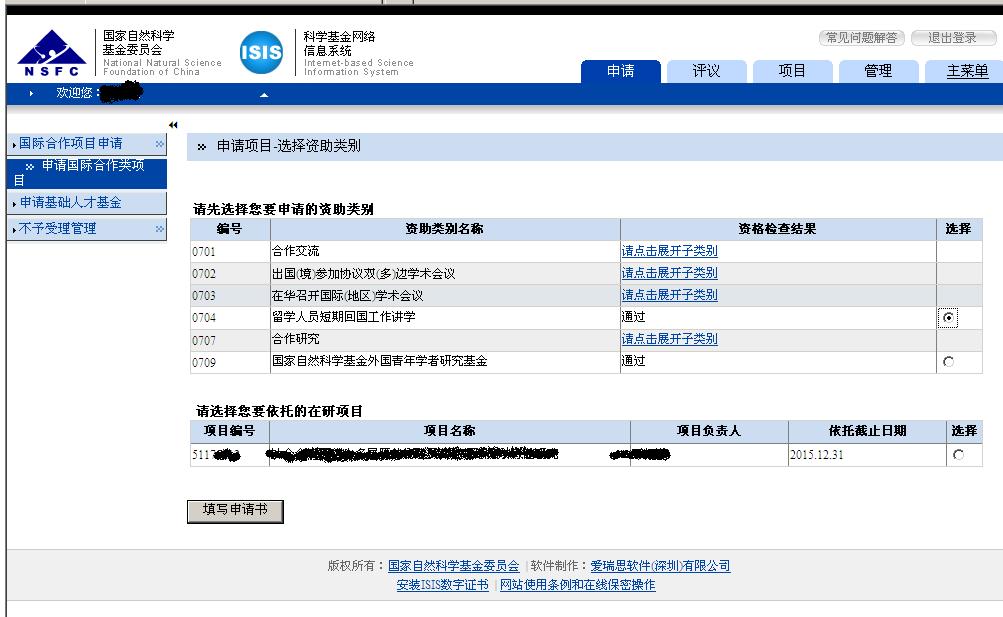 按去年的方式, 申请项目->选择资助类别 ->0704 留学人员短期回国工作讲学-> 通过 ,就可以看到了,快查了 [ Last edited by hyzgh on 2011-8-21 at 23:11 ] |