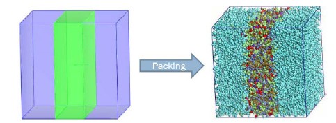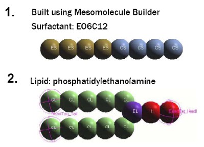 请问这图是如何构建出来的?两侧是1表面活性剂,中间是2磷脂。是用Build Mesostructure做的吗?还是DPD? 这个知道是用Mesocite的DPD做的,但是怎么做的呢? 偶然看到的例子,没有具体过程,初学者,忘大侠们指点,最好能具体点,谢谢! [ Last edited by jolly1987 on 2011-8-23 at 09:37 ] |