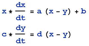 >> fun=@(t,x)[(0.2*(x(1)-x(2))+0.3)/x(1);0.8*(x(1)-x(2))];