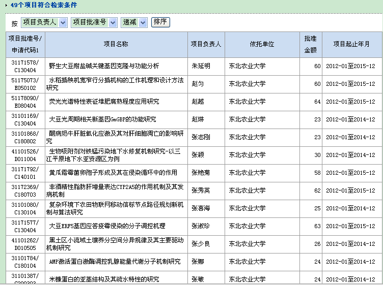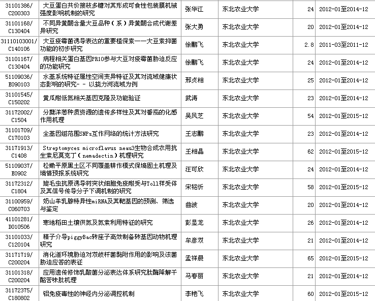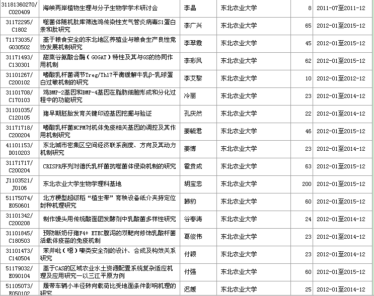 东北农业大学2011年自然科学基金(共49项)