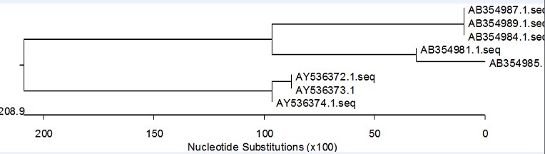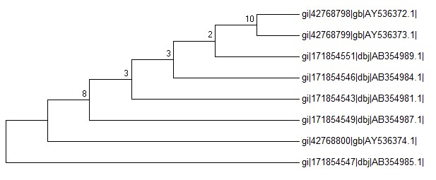 这是小弟自己用MegAlign做的系谱树图,各位大侠指点小弟一下,有什么问题?