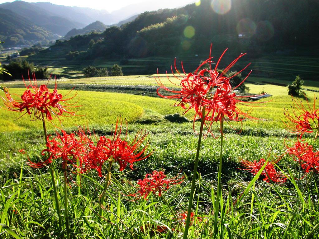 | The name of the flower is so especial.I like it very much. It seems that the name of it refers to a romatic story.The scenery is so charming,red flower,sunshine,green grass and the green hill,how beautiful it is!If I am there now, it must be a joyful day! |
