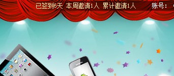 邀请链接: https://hd.maxthon.cn/8years/index.php?rcode=NTUwNzM2OQ== #傲游8周年#连续签到必有奖,你敢来我敢送!iPad2,限量版T恤,三星3G手机.ipod shuffle 海量大礼等你拿!百分百有奖~~~ https://hd.maxthon.cn/8years/index.php?rcode=NTUwNzM2OQ== 成功者每人20金币 |