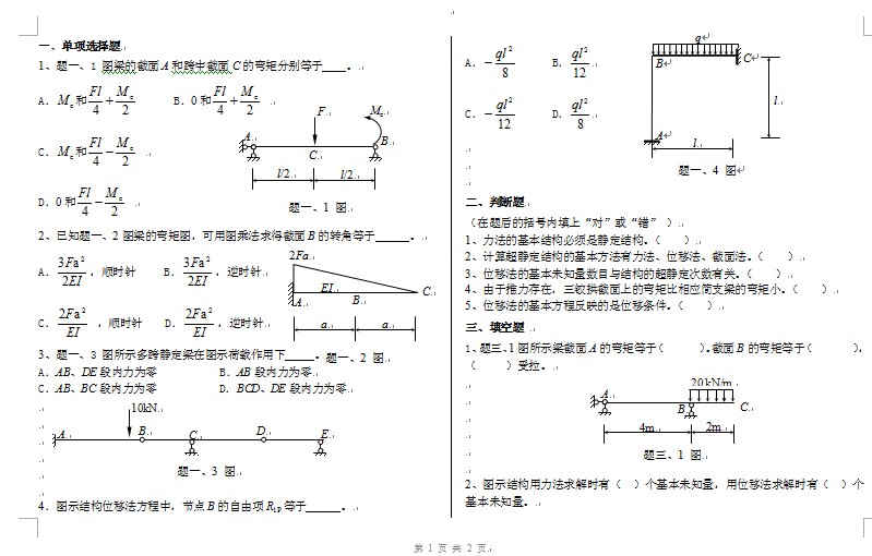 【试卷资源】结构力学试题