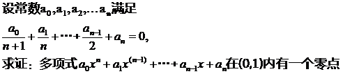 由罗尔中值定理得其导函数即题目中所证多项式在(0,1)内有零点