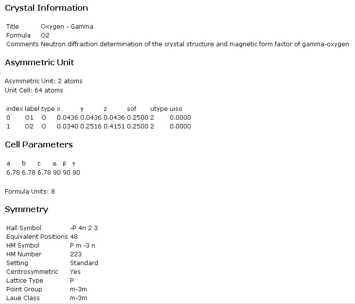 请教各位大侠:氧分子晶体怎么计算?我在计算gamma O2 几何优化能量时总是failed。请问有无谁算过? [ Last edited by 贺仪 on 2011-9-10 at 19:36 ] |