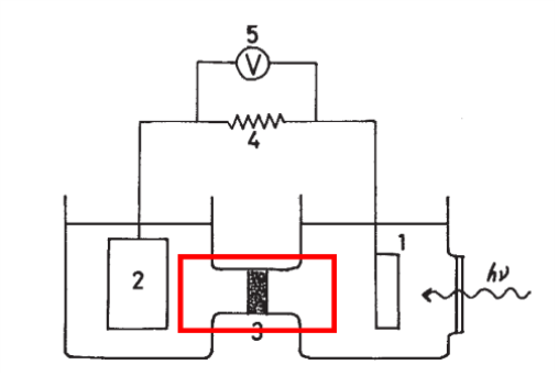 额 不好意思 不过我有点不明白的是 图中红色框部分的 两电极之间 有联系么? 有人说在二氧化钛电极处下面的反应产生的氢离子会从二氧化钛端流动至铂极一端 这种说法可信么、?