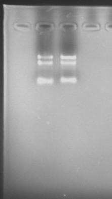 楼上的,你提出来什么样子啊?一般应该没有什么问题吧。不会是跑电泳的时候降解了吧。。。。