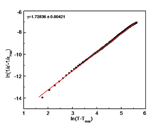 看到文献里面用居里外斯定律算弛豫铁电体的弥散程度。介电常数倒数之差对数,跟温度倒数之差取对数,拟合出的曲线,然后得出,r值这个参数表征驰豫程度,那请问公式中的c也就是居里常数,怎么得出来,只有知道c值才能求出r只吧?或者r值怎么求出来? [ Last edited by v707 on 2011-8-31 at 15:12 ] |