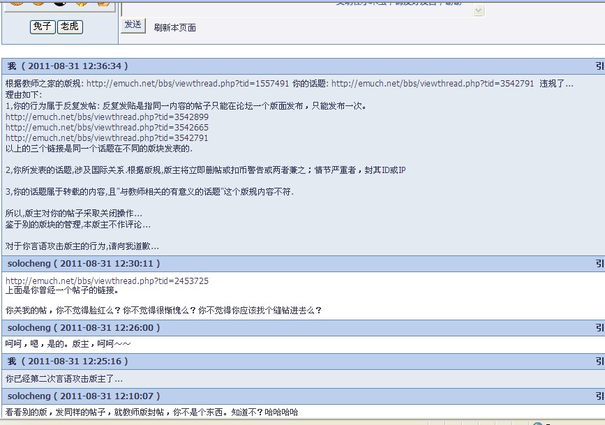ID solocheng (https://muchong.com/bbs/space.php?uid=467239) 对版主关闭其帖子https://muchong.com/bbs/viewthread.php?tid=3542791 的操作有异议。发论坛消息言语辱骂版主。 在教师之家禁言1个月(9月1日--9月30日) |