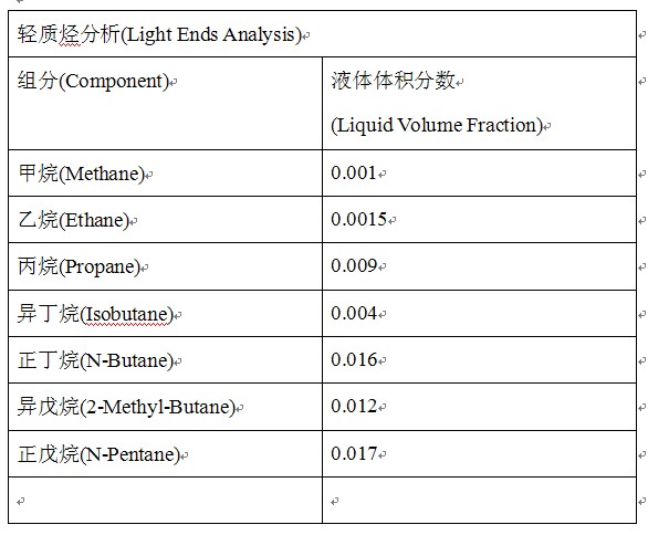 请问,如何测定石油轻质烃(Light Ends),以试验混合物体积分数(a fraction of the assay mixture)的方式给出?如下图所示: 应该通过何种实验,这种实验有相应的国家标准吗,哪里能做这种实验? |
