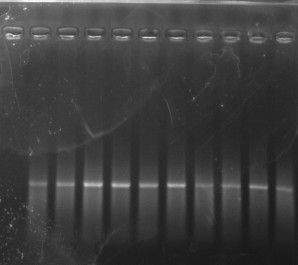 最近做pcr 总是呈现这种涂抹状,原来一直以为是用的taq 酶 mix 没有反应完所致 ,今天专门点了两个孔的 mix 结果泳道是干净的 也不知道这样的抹带究竟是什么原因造成的 请做PCR 经验丰富的朋友指点 电泳图片 就这样的 有时候p 出来 也会有这种抹带的样子 照片这样的 [ Last edited by 老夏853 on 2011-9-14 at 18:00 ] |