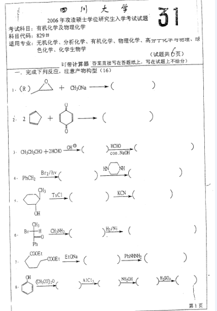 【真题资源】清华,北大,中科院,川大等名校化学考研真题