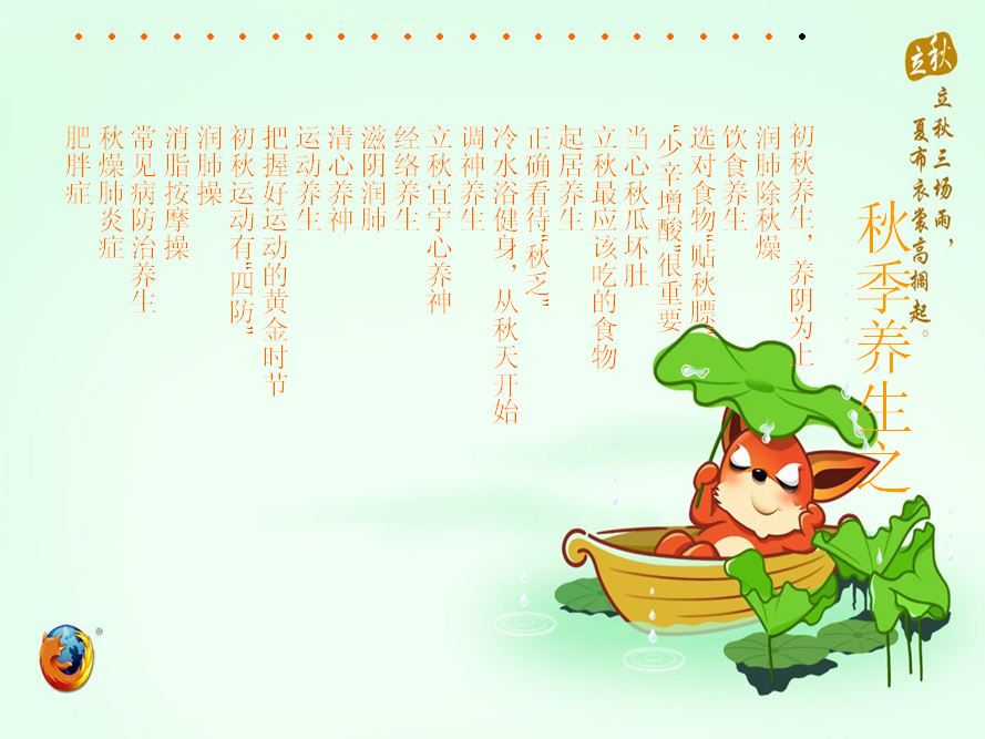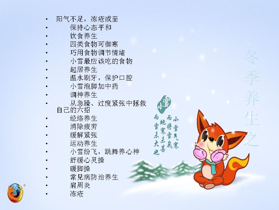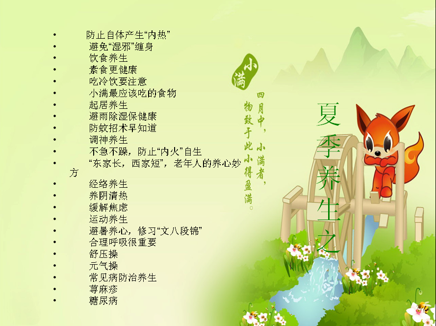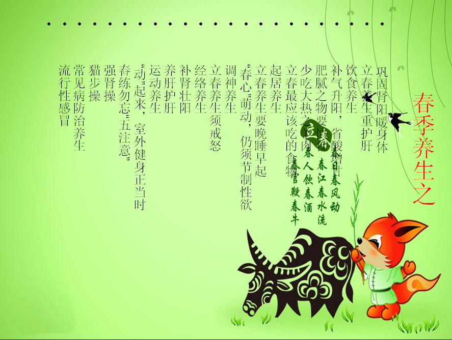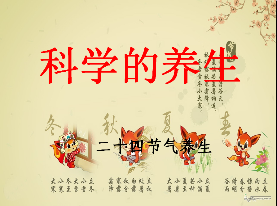 这是一个关于科学养生的PPT,其按照二十四节气分别介绍了相关节气的养生,可以让大家在每个季节每个节气都有好的身体,健康的体魄。 ps:国学养生堂家族欢迎您!http://muchong.com/bbs/group.php?gid=119 [ 来自科研家族 国学养生堂 ] [ Last edited by anyluk on 2011-9-15 at 07:13 ] |