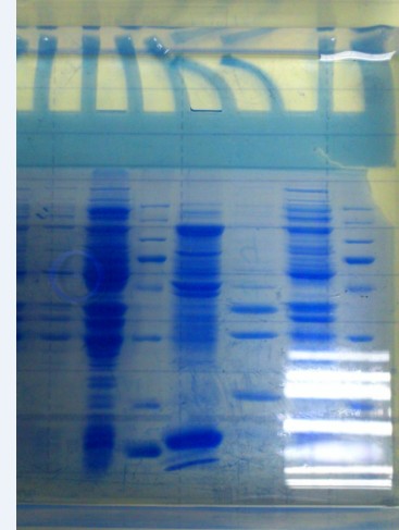 我目的蛋白75Kd。蛋白表达后是包涵体,透析3 天后,然后我用超滤管离心,得到的蛋白跑胶,右边第四个条带。为什么包涵体透析后杂蛋白这么多呢?是因为蛋白是我浓缩后的原因吗?或者其他的原因 [ Last edited by 疯花血月 on 2011-9-15 at 20:47 ] |
