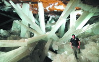 一项新的研究表明,大约在10年前首次发现的迄今已知全球最大的洞穴结晶体——单个的大块石膏长达11米、厚1米且重达55吨——可能用了100万年才长到了现今的规模。 这些结晶体发现自位于墨西哥银矿和铅矿中的洞穴深处,而在1975年之前,这一洞穴中充满了富含矿物质的水体,在此之后,矿工为了获得新的矿脉而逐渐排掉了洞穴中的水,该洞穴才能够展现在世人面前。 实验室研究表明,石膏块需要在54摄氏度至58摄氏度之间才能够结晶。 西班牙格拉纳达大学的Van Driesschea和日本科学家在9月12日的美国《国家科学院院刊》(PNAS)网络版上报告了这一研究成果。 通过将一个石膏块浸泡在洞穴水体的样本中,并利用一种显微成像技术以便让科学家能够直接测量结晶生长的速度,研究小组发现,在55摄氏度时——结晶在此温度下将以最慢的速度生长,一块石膏晶体大约需要99万年才能够长到1米的直径。 而在56摄氏度的水温下,相同的晶体大约需要50万年就能够形成。 研究人员指出,这里所发现的结晶普遍为四角形,而且硬度比一般的结晶低很多,且比较容易碎裂。 http://www.pnas.org/content/early/2011/09/06/1105233108.abstract [ Last edited by taozhikai on 2011-9-19 at 13:46 ] |
