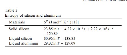 如何得到Cr和Nb的熵与温度的表达式,如附件中表三的,还有就是附件表1中的△Sf如何获得。麻烦高手帮个忙,给出固相及液相Cr和Nb的熵与温度的表达式(类似于表三),还有就是帮忙查出Cr和Nb的△Sf,感激不尽。 [ Last edited by likeweid on 2011-9-20 at 22:00 ] |