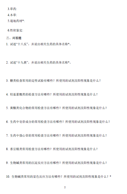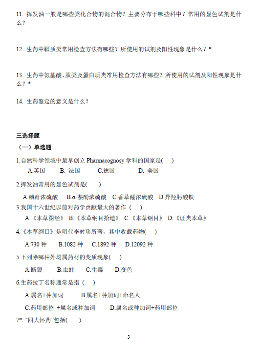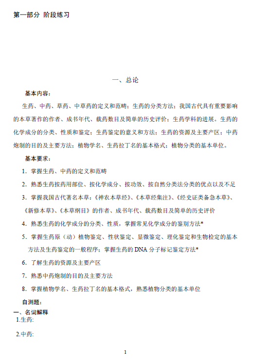 有福啦~~~~~~生药练习题,含答案哦~还有总结等