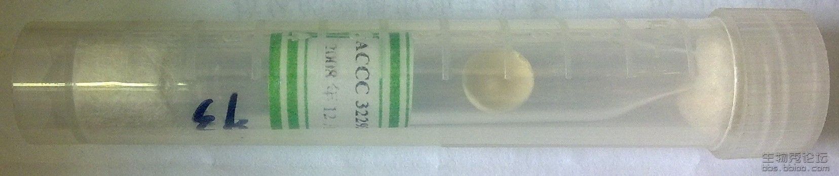老板从国外买回的一株真菌拟青霉,是用小管保存,里面有一张小纸片,上有一些好像孢子粉的固体在上面,我剪下一些纸片放在PDA平板上,一周还不长,求高手,知道该怎么活化。如图