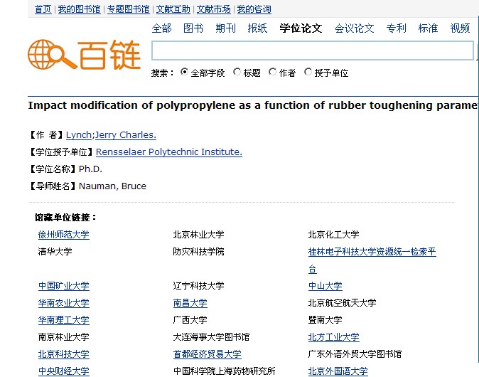 文献下载求助!!!!这是一篇学位论文,请大虾帮忙 我已经拿出我所有的金币求助了! 题名: Impact modification of polypropylene as a function of rubber toughening parameters. 邮箱接收全文【作 者】Lynch;Jerry Charles. 【学位授予单位】Rensselaer Polytechnic Institute. 【学位名称】Ph.D. 【导师姓名】Nauman, Bruce 本人邮箱 545076662@qq.com |