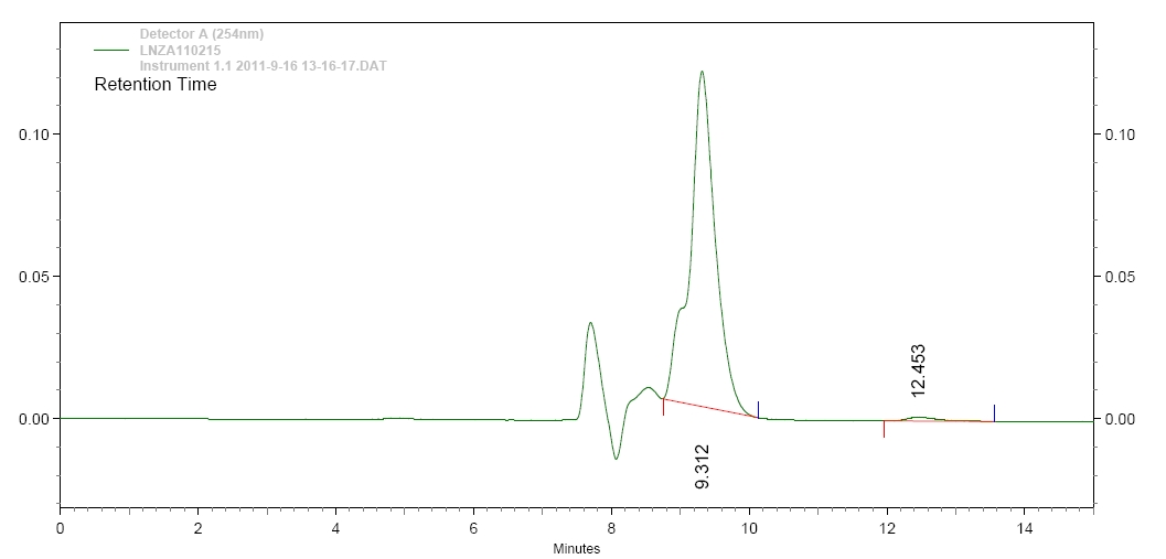 8分钟左右的地方是溶剂峰,最大的就是主峰化合物A,左边的肩峰就是对映体,怎样才能分开?分不开的原因是什么?请大侠指点啊!!